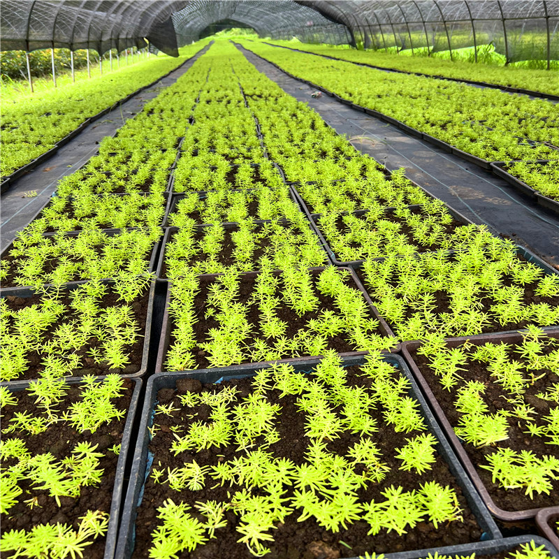 供應金葉佛甲草方盆苗,托盤苗,金葉佛甲草的葉片顏色為金黃色,高度在10-20公分左右,繁殖速度非???,可以說是落地生根,斷掉的莖葉到了地上就能夠生根。佛甲草多少錢一平方?佛甲草按40*40托盤來購買,一個平方需要6個托盤,一個托盤按照10元計算,是60-70元左右,也有佛甲草是按斤或者按株賣的,不過也是可以按平米賣的,大概一平米的佛甲草價格大約60~70元左右。買金葉佛甲草,還是找專業(yè)供應商,買的放心。